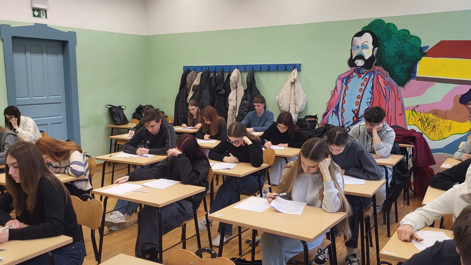 U našoj školi je 5. veljače u 13.00 h održano školsko natjecanje iz logike i filozofije. Na natjecanju je sudjelovalo 16 učenika (9 iz logike i 7 iz filozofije). Ispit iz logike bio je u obliku testa znanja, a iz filozofije se sastojao od dva dijela (test znanja i esej).